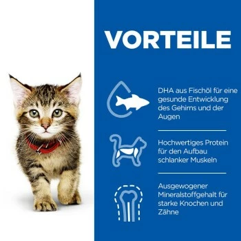 Ihr kleines Kätzchen benötigt eine Premiumnahrung, die ideal zu seinem aktiven Lebensstil passt. Darum wurde Hill’s Feline Science Plan Kitten Trockenfutter sorgfältig auf die Bedürfnisse von Kätzchen während der Entwicklung abgestimmt, damit sie den besten Start ins Leben erhalten und ihr volles Potential ausschöpfen können. Voll an DHA aus Fischöl für eine gesunde Entwicklung des Gehirns und der Augen und hergestellt mit hochwertigen Zutaten liefert dieses Katzenfutter hochwertiges Protein zur Unterstützung des Muskelwachstums und der Entwicklung der Kätzchen. Der ausgewogene Mineralstoffgehalt fördert starke Knochen und starke Zähne, damit Ihr Fellknäuel im ersten Lebensjahr fit und gesund bleibt.