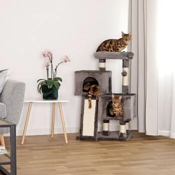 - IDEALES SPIEL- UND RUHEPARADIES. Die vortreffliche Ausstattung dieses Katzenbaumes mit 2 Höhlen und einem Plüschball mit Glöckchen befriedigt den Spieltrieb Ihrer Katze. Das gemütliche Liegebett unterstützt zusätzlich die benötigten Ruhephasen und auch das beliebte Beobachten kommt nicht zu kurz. Die perfekte Balance zwischen Spielspaß und Rückzugsmöglichkeiten.