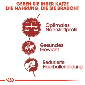 ROYAL CANIN Fit 32 hat einen angepassten Kaloriengehalt, der ausgewachsenen Katzen hilft, ihr Idealgewicht zu halten. Dies trägt zur Förderung einer optimalen körperlichen Verfassung bei. ROYAL CANIN Fit 32 enthält ausgesuchte Ballaststoffe, die helfen, das Ausscheiden geschluckter Haare zu erleichtern. Dies sorgt letztlich auch für eine deutlich reduzierte Haarballenbildung.