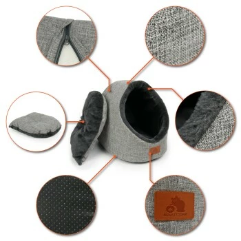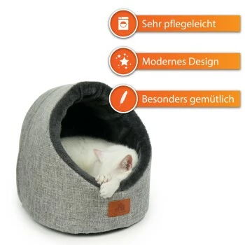 - GEMÜTLICH – Diese Kuschelhöhle ist der perfekte Schlafplatz für Katzen sowie kleine Hunde. Das herausnehmbare Wendekissen lässt sich den Sommer- und Wintertemperaturen anpassen.