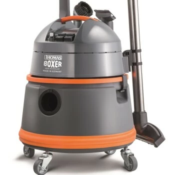 Der beutellose Waschsauger THOMAS BOXER saugt, wischt und trocknet Böden und Polster in einem einzigen Arbeitsgang. Der flexible Allrounder ist ein Must-Have für In- und Outdoor, Auto & Co.. Dank seiner robusten Bauweise und seinen vier Spezialmöbelrollen bewegt er sich auch auf unebenen Flächen sicher. Die Nasssaugfunktion gepaart mit dem 6 Liter großen Schmutzwasserbehälter ermögliche beispielsweise auch das Aussaugen von Aquarien.