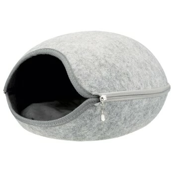 2 in 1: Kuschelhöhle Luna. Der isolierende, schmutzabweisende und formstabile Liegeplatz aus Filz bietet Katzen Höhle und Bett in einem. Durch den umlaufenden Reißverschluss ist die Kuschelhöhle komplett zu öffnen und platzsparend zu verstauen. Mit gestepptem Kissen (Handwäsche).