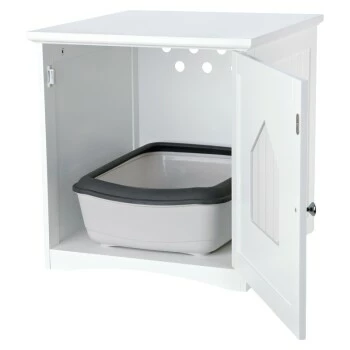 Das Häuschen aus hochwertigen, lackierten MDF-Platten passt ideal für Standardtoiletten ohne Rand. Alternativ kann das WC-Häuschen auch als Schlafhaus genutzt werden.